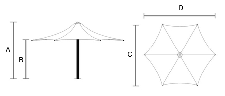 Hexagonal Umbrellas are the ideal design for commercial or domestic applications that require random layouts such as cafe sidewalks, resort pools or public environments. At Flexshade® we are not restricted to standard sizes and can accommodate custom designs upon request.
